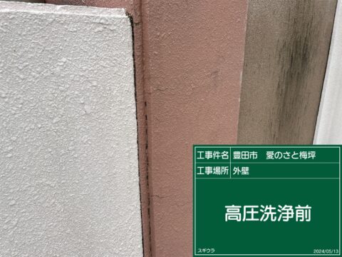 今日は現在外壁塗装工事施工中の洗浄、下塗りを載せていきます!