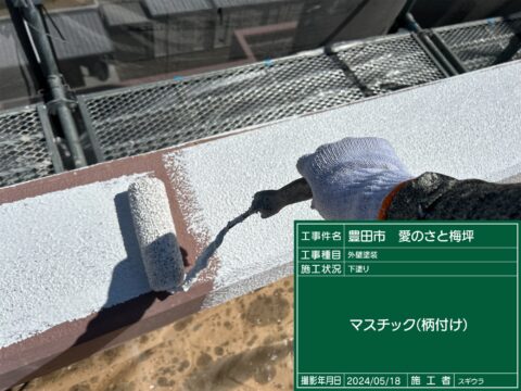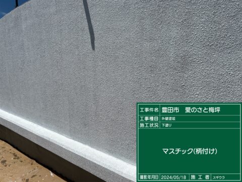 今回、下塗りは柄付きでマスチックという工法を使用しました!