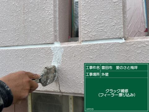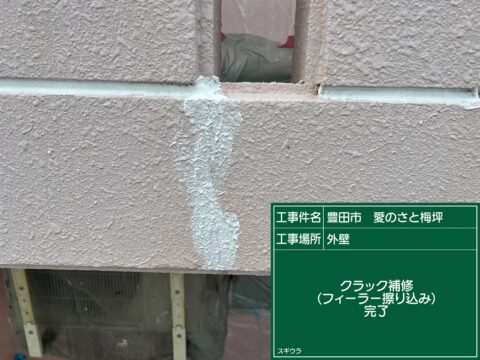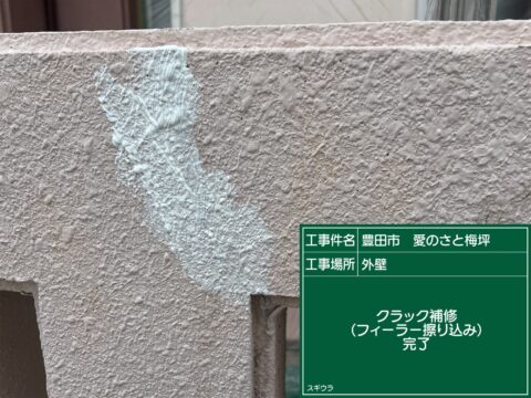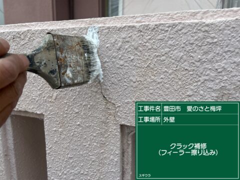 大きいクラックはシールで埋めて小さなクラックは外壁の下塗り材をすり込みました!